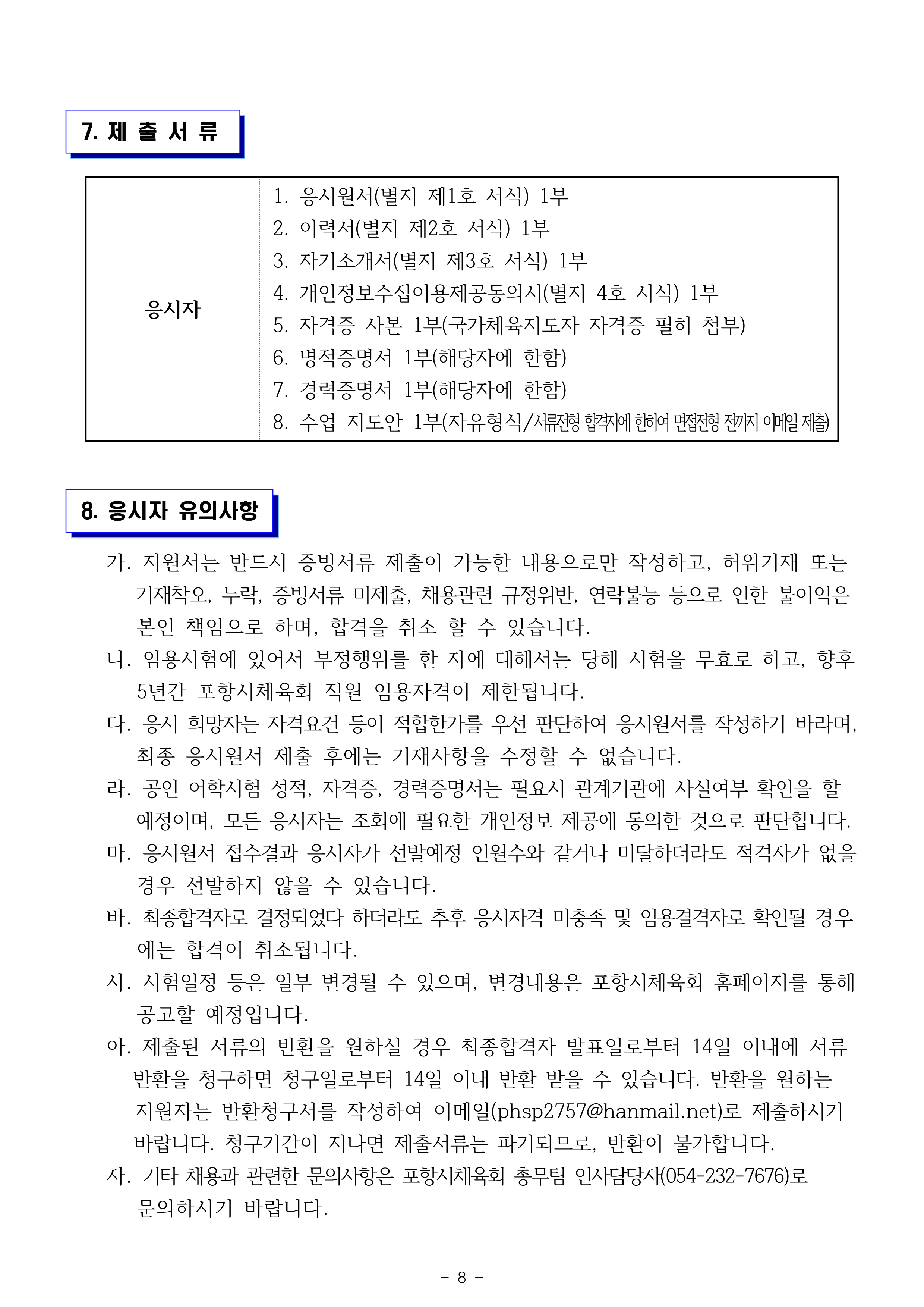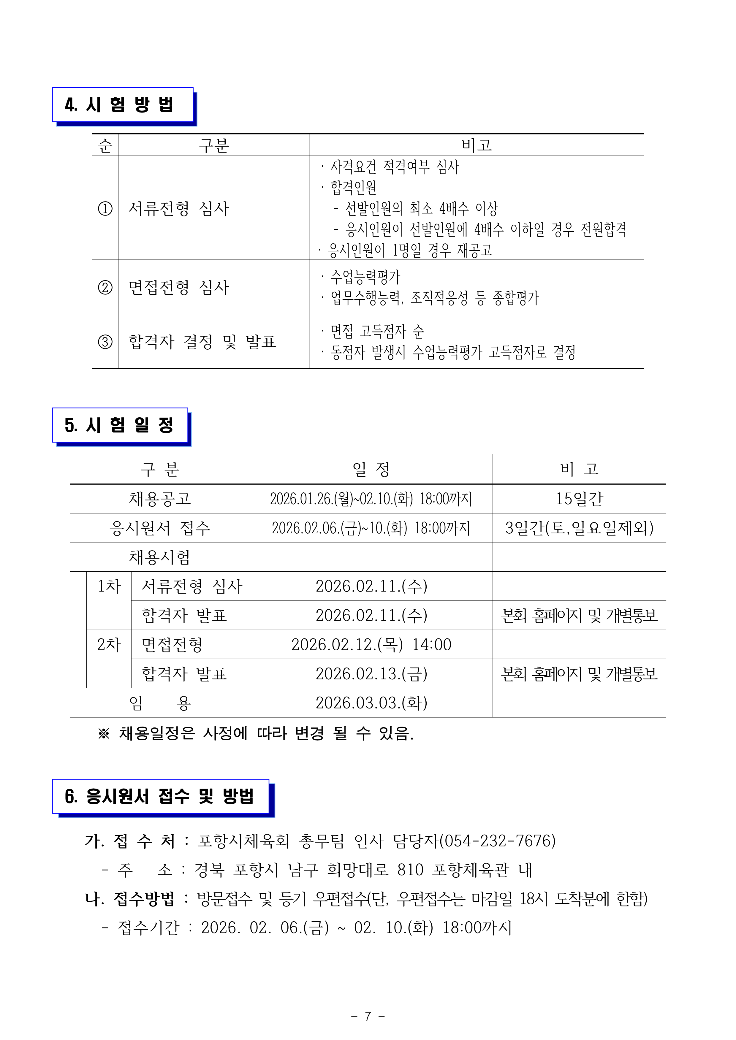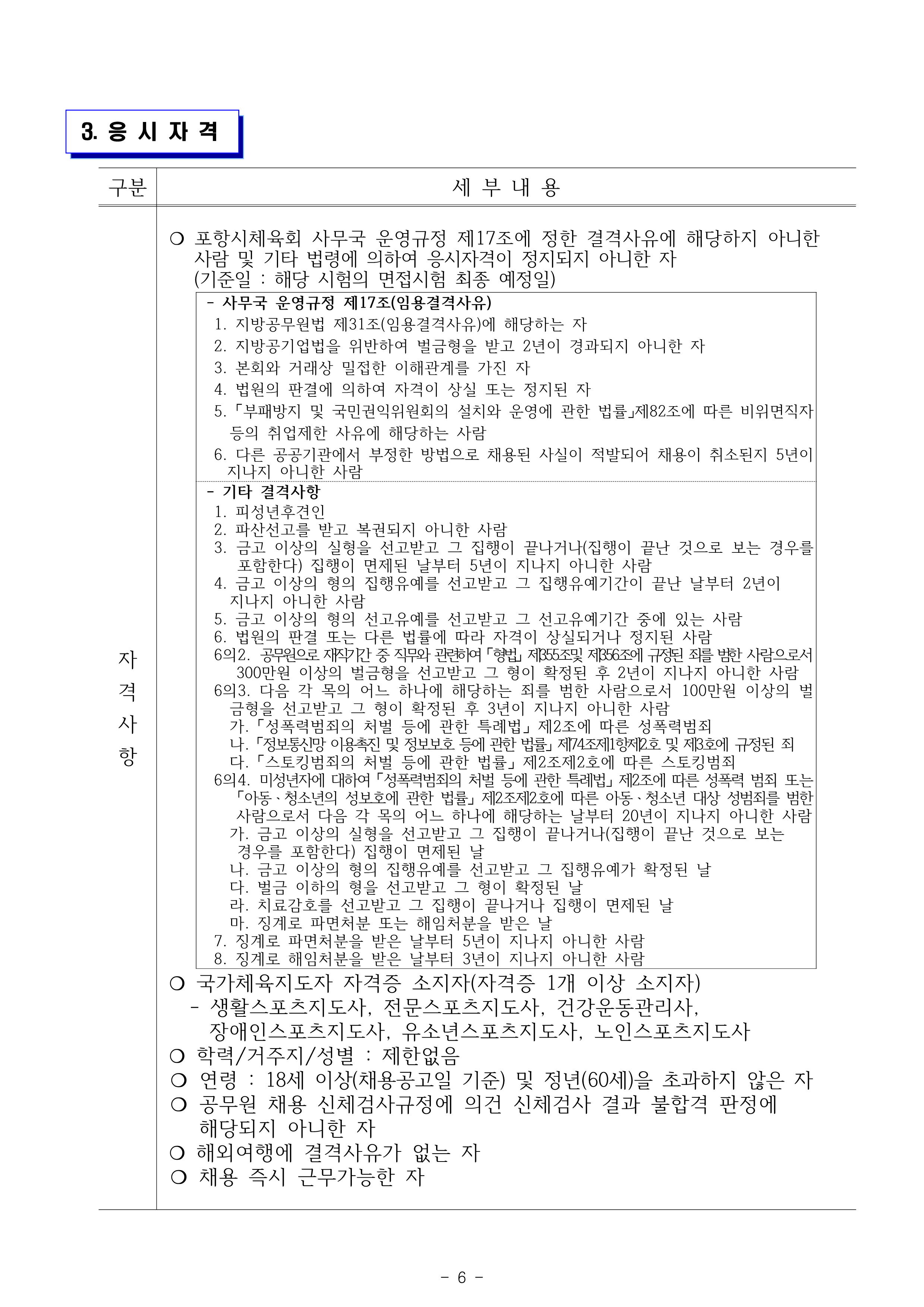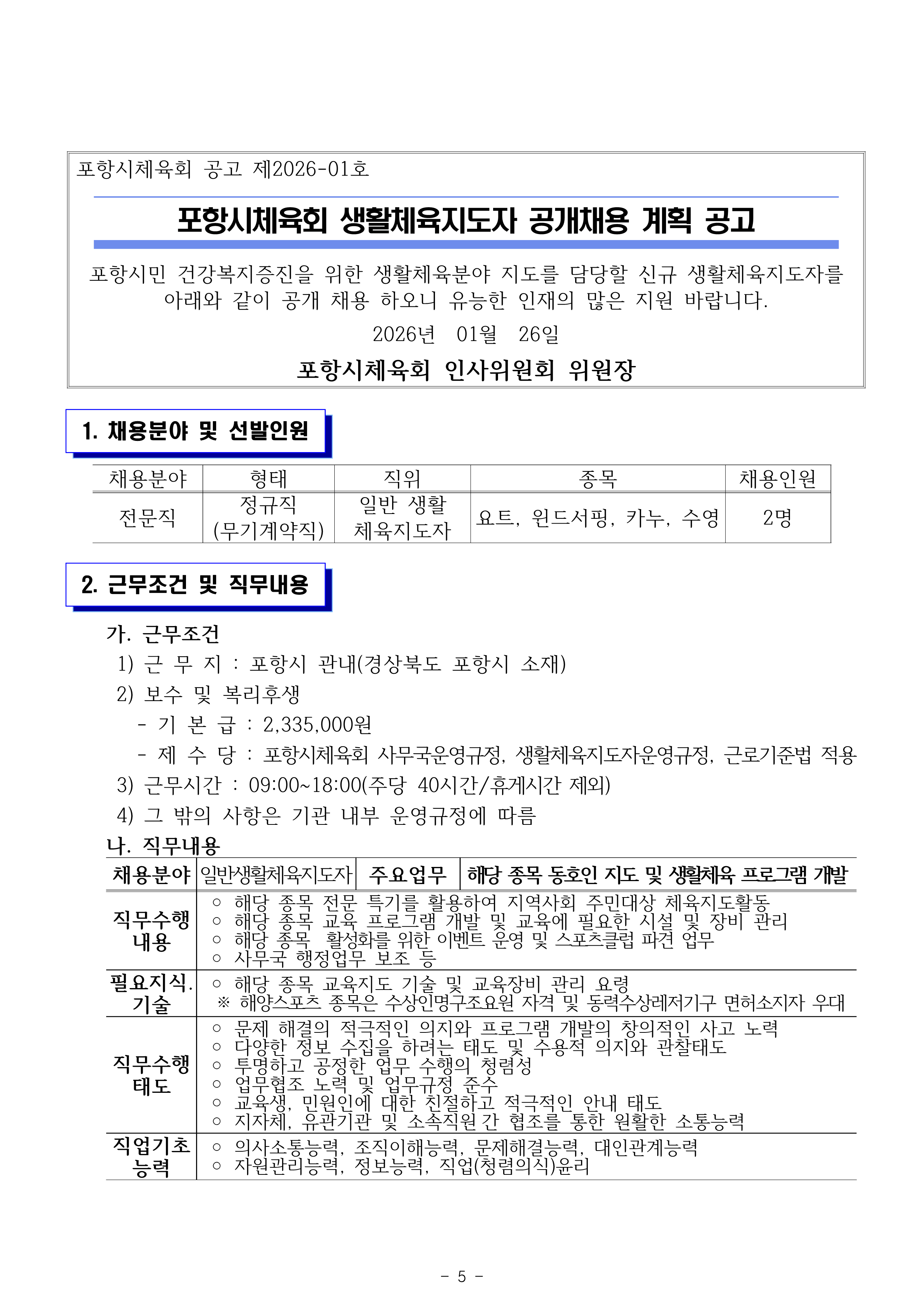 2026년도 포항시체육회 생활체육지도자 채용 공고